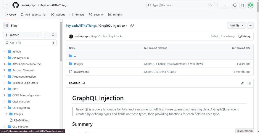 Sometimes, you might struggle to track down payloads for a particular category or simply need to conduct a speedy test with some straightforward payloads. This is when I turn to the PayloadsAllTheThings repository. It contains an extensive collection of basic to advanced payloads covering nearly all types of bugs, including SQL injection, XSS, SSRF, open redirect, and more.